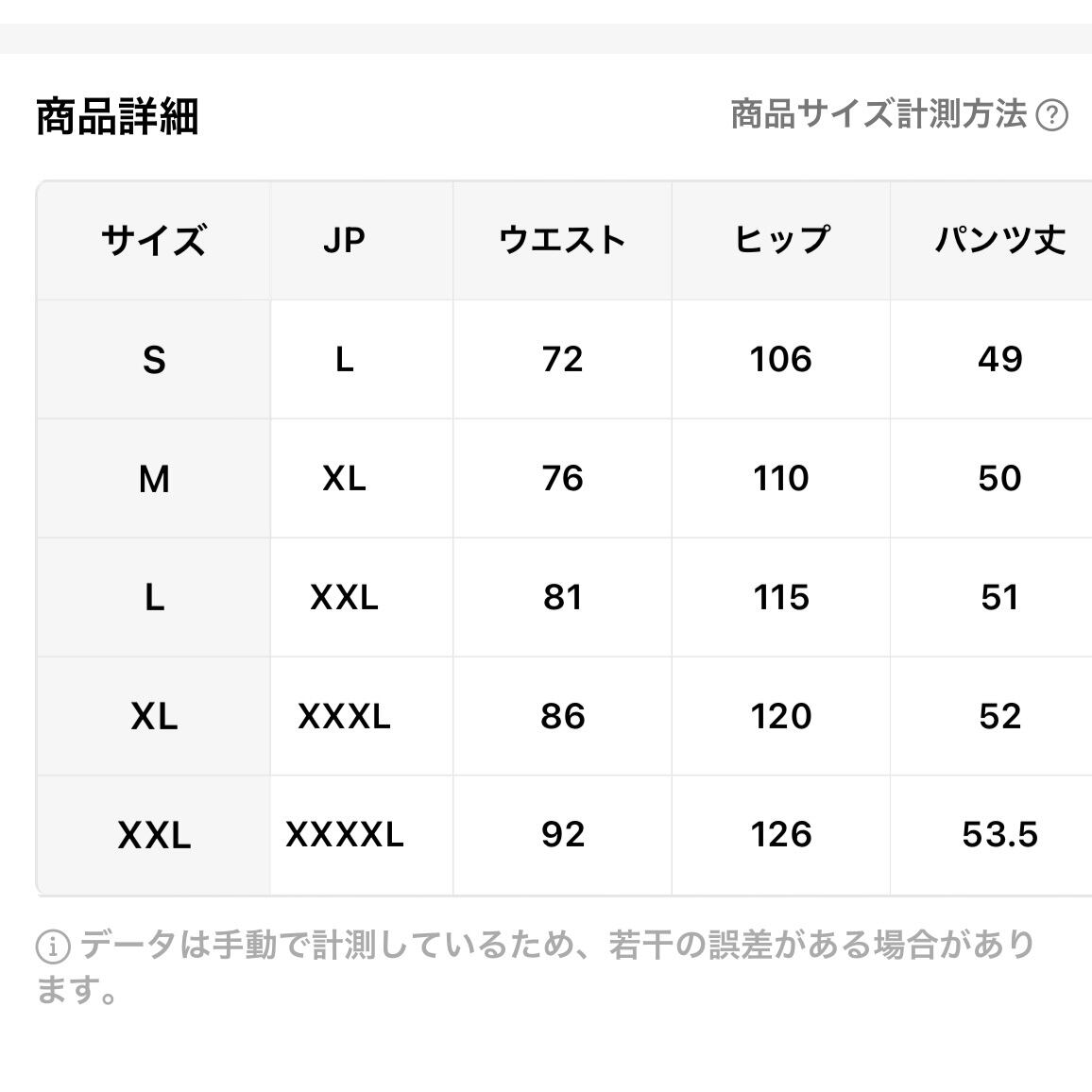 ※大きめ膝下丈着用の場合はLサイズ(JP-2XL)